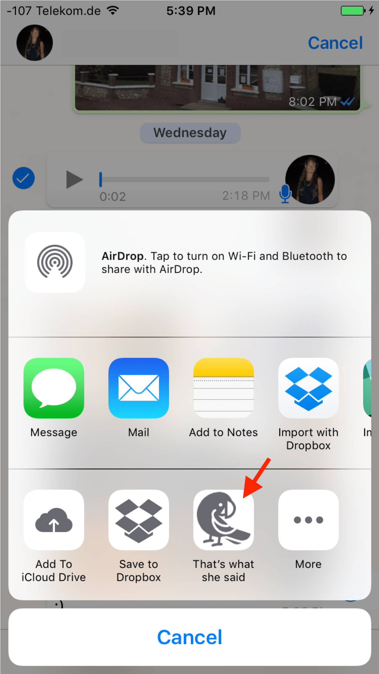 If you tap on it, the iOS actions open where you can choose That’s What She Said: