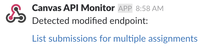 This script monitors the Canvas API documentation and then posts any detected changes to a Slack channel.