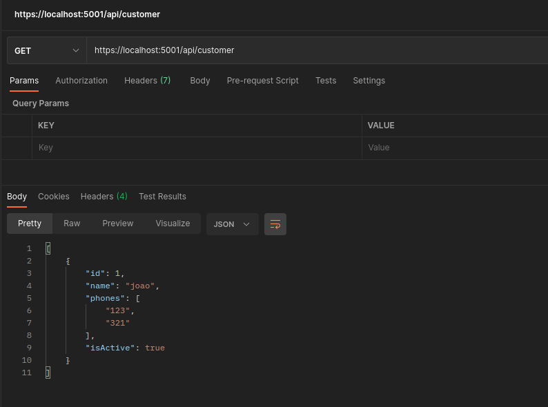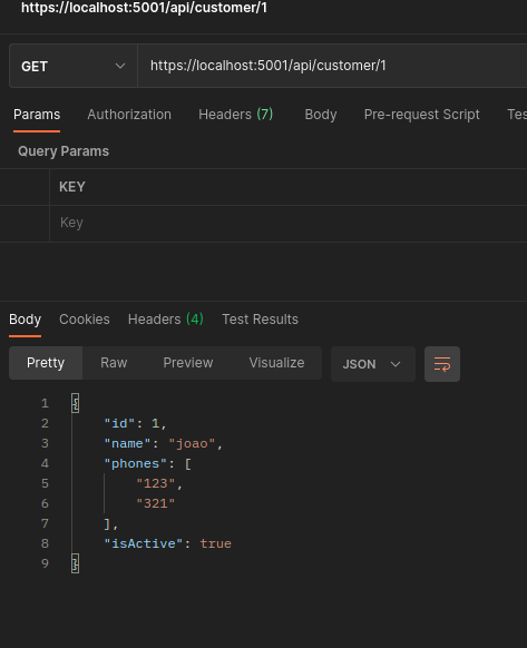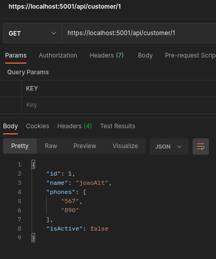 Repare que este método retorna todas as informações, pois não foi especificado um “Id” na hora da requisição. Para retornar um cadastro específico, bastamos informar o “Id”