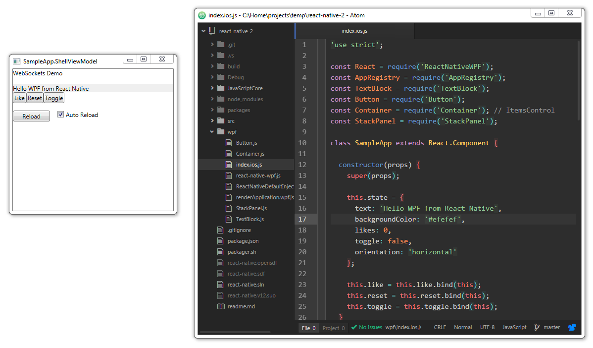 This is a prototype to see if react-native could drive WPF. This is not production ready and a lot of this code is "spike code". I am also not a C++ developer so please excuse any atrocities there. The main purpose was to see if this could be integrated into an existing WPF codebase (for the purpose of eventually moving the entire app to the web). If you are starting a new desktop project and want to use JavaScript, use something like github's Electron.