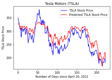The reasons for such a high percentage error could be that Tesla is known for its volatility, and that is something that model can’t accurately account for. It was started in July 1, 2003 which is relatively recent, and is very popular on social media because it is a leader in the electric auto-vehicle market.