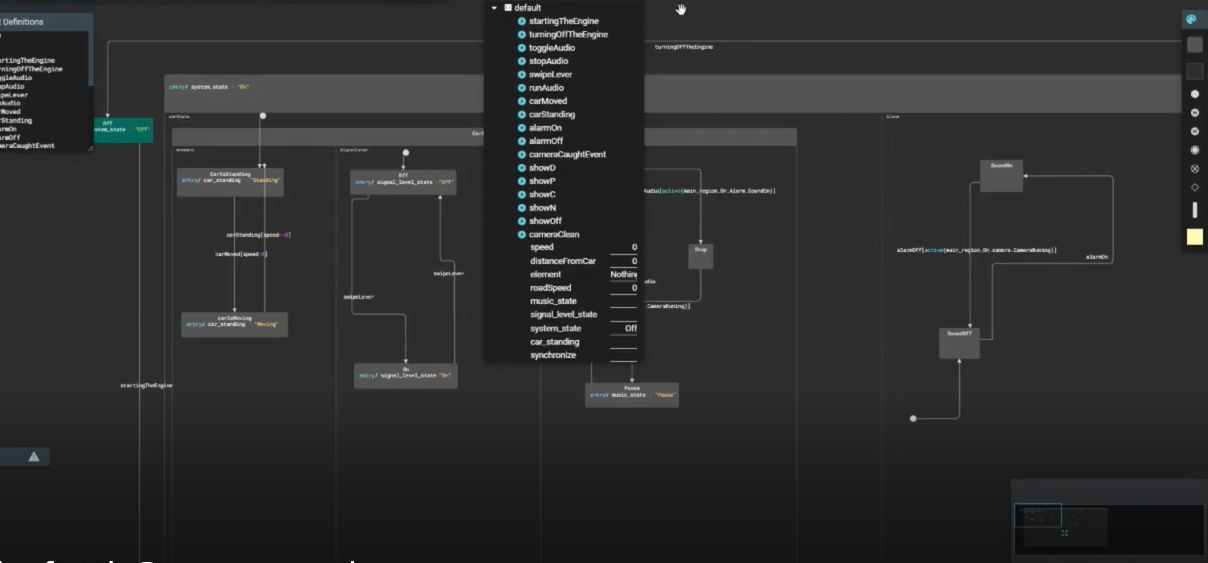 Through the process I worked with two languages: the first language - Statecharts: a visual formalism which extends the state transition diagram. The second language we encountered is the LSC: A scenario based programming. The program can simulate multiple scenarios of a driver driving his car in a statechart using Yakindu tool and in A simple GUI implemented in Pycharm.