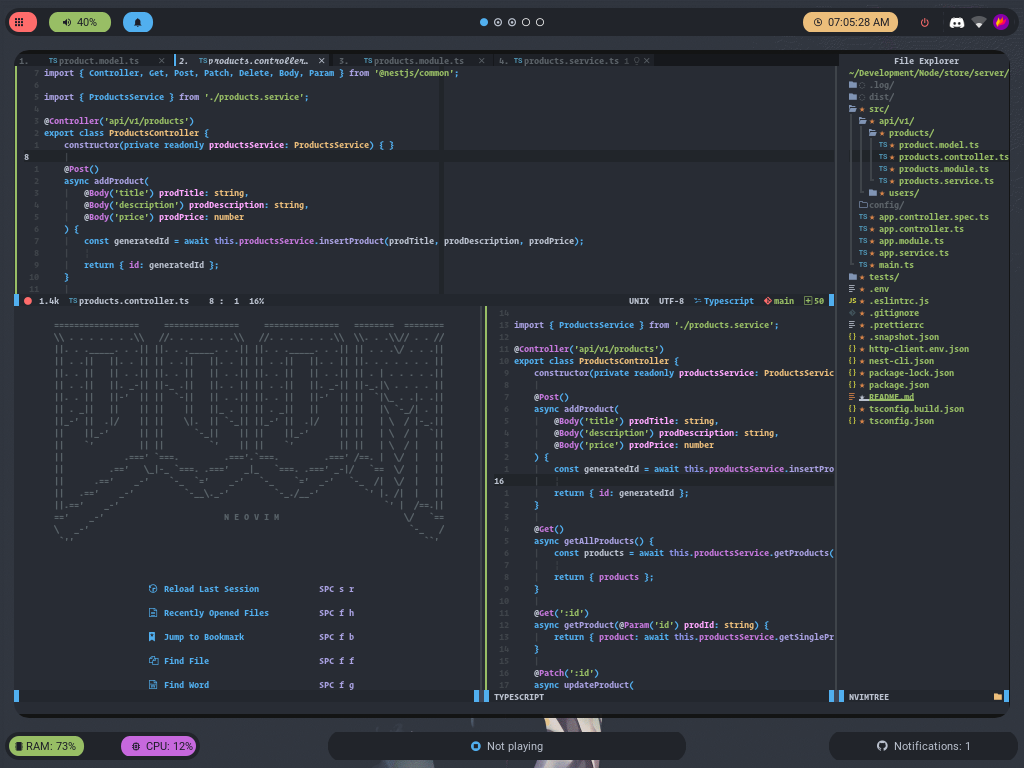 - Automatized, you don't have to care about manually managing plugins, installing language servers or even TreeSitter syntax parsers, Doom Nvim will handle all these things for you.