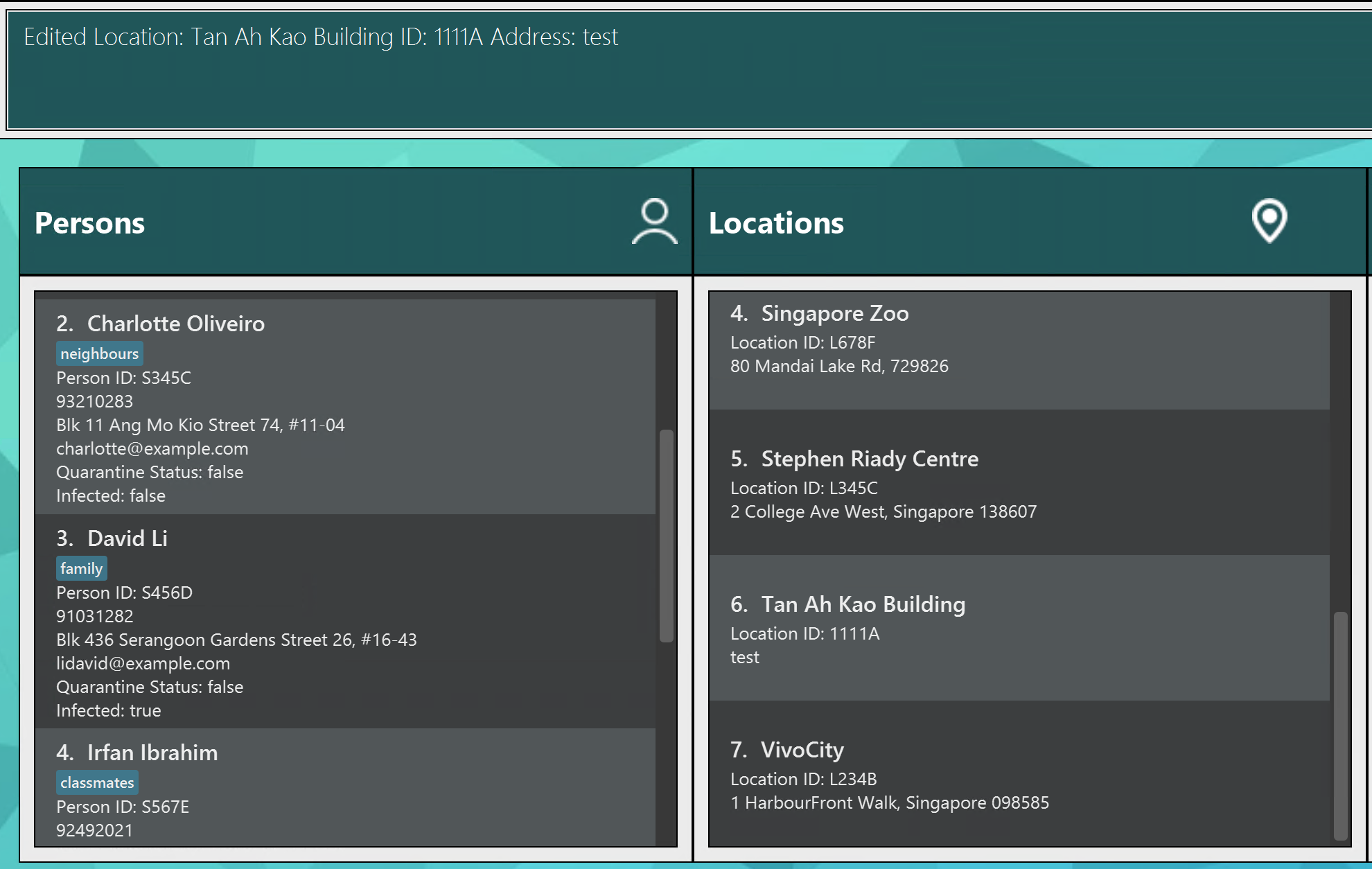 If I decide to edit a location, and despite putting the same address "test", it probably should check against the current address and determine whether is it the same? Then if it is the same, it should throw an error.
