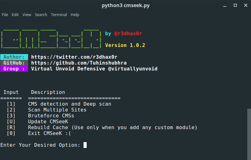 P.S: Please make sure you have git installed, CMSeeK uses git to apply auto update.