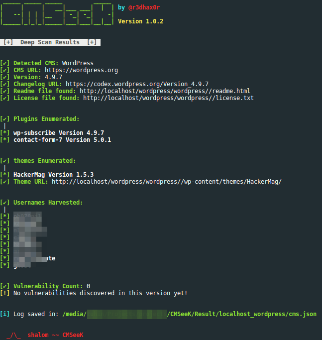 Usage of CMSeeK for testing or exploiting websites without prior mutual consistency can be considered as an illegal activity. It is the final user's responsibility to obey all applicable local, state and federal laws. Authors assume no liability and are not responsible for any misuse or damage caused by this program.