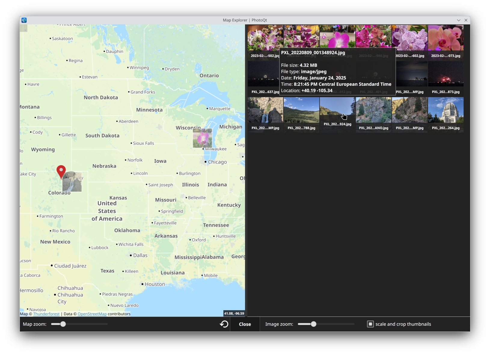 - Showing GPS locations of images with an embedded map or explore all images with location data in current folder with an interactive map