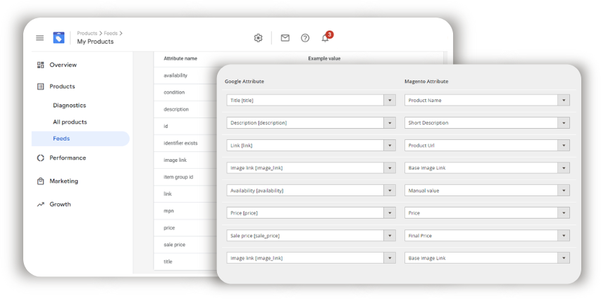The Magento Google Shopping Feed Extension reduces manual feed management to a few simple steps. It helps you import products to Google Merchant Center faster and keep them up to date.