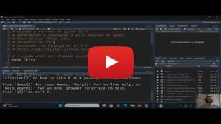 Nesta aula, convido vocês a me acompanharem apenas olhando uma sessão do R. O objetivo aqui ainda não é explicar em detalhes como ele funciona, e nem que vocês reproduzam o que eu estou fazendo: a proposta é apenas mostrar o R em funcionamento, para vocês começarem a entender melhor do que se trata. Então assistam sem pressão, e ninguém precisa ainda ter o R funcionando para acompanhar esta aula, certo? A imagem a seguir irá te direcionar para o vídeo no Youtube (use a opção de abrir em outra aba se desejar):