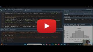 Agora vamos aprender a criar histogramas com variáveis quantitativas, usando a função hist (). A imagem a seguir irá te direcionar para o vídeo no Youtube (use a opção de abrir em outra aba se desejar):