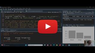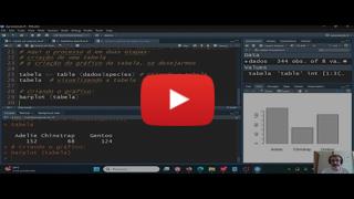 Vamos seguir com os dados que apresentamos na aula passada, e aprender a usar a função table () com o objetivo de criar um gráfico de barras. A imagem a seguir irá te direcionar para o vídeo no Youtube (use a opção de abrir em outra aba se desejar):