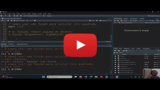 Agora que temos um script, vamos entender o primeiro dos dois elementos centrais do funcionamento da linguagem R, as funções. Vamos lá! A imagem a seguir irá te direcionar para o vídeo no Youtube (use a opção de abrir em outra aba se desejar):