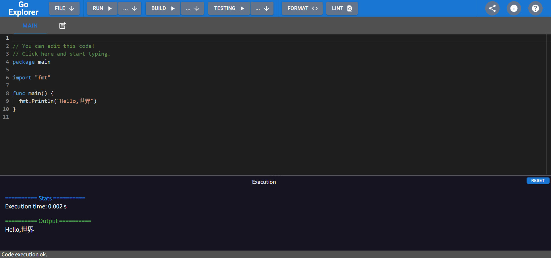 Go Explorer allows you to learn, explore and experiment with the Go Programming language without no setups and needing to install the actual compiler.
