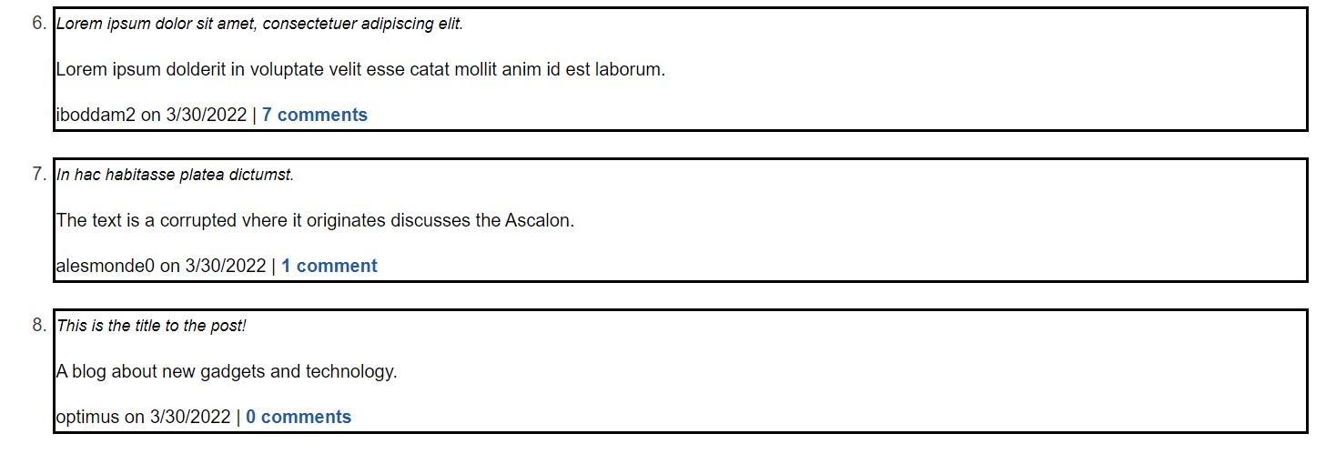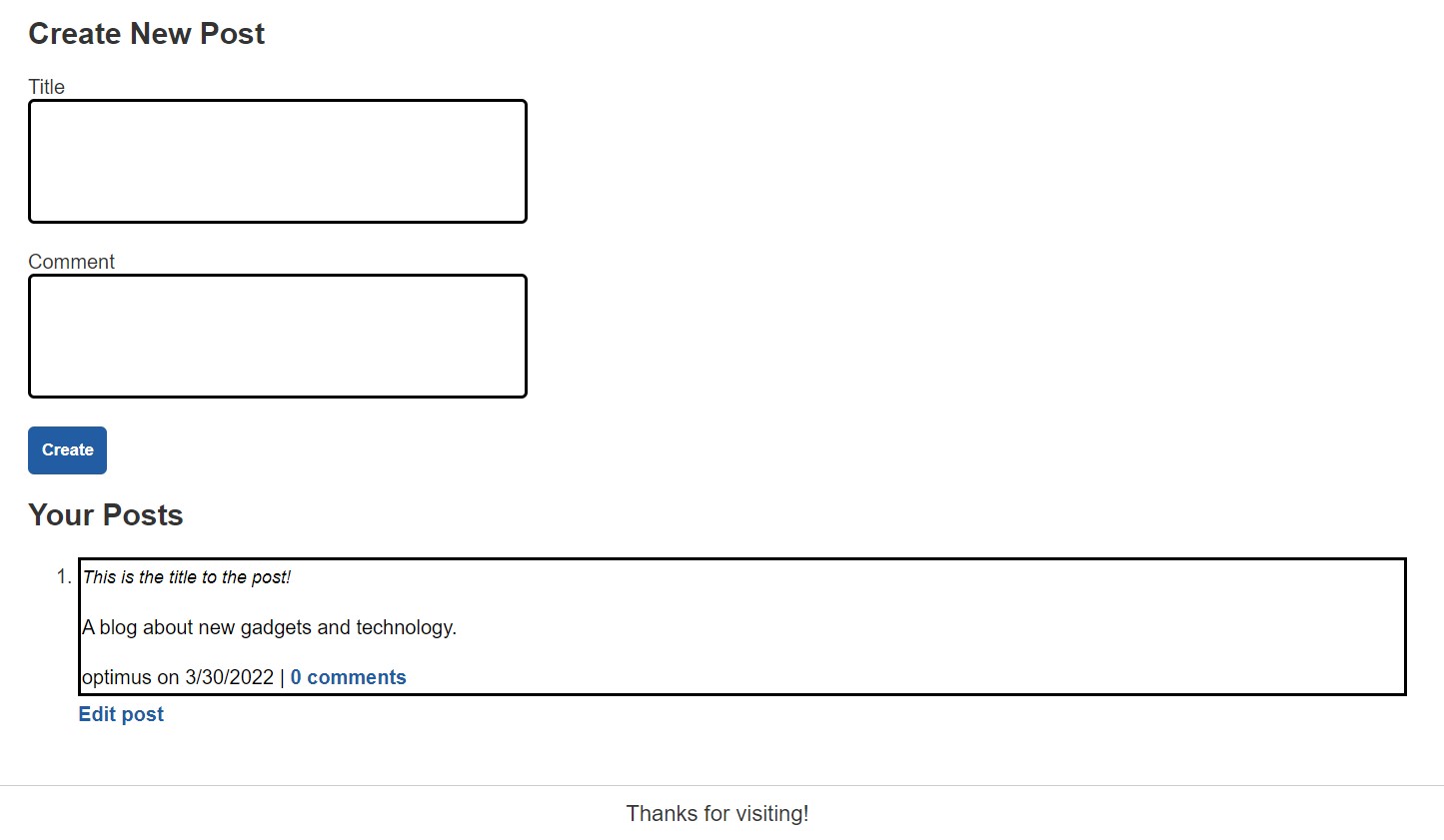 - THEN I am taken to the homepage and presented with existing blog posts that include the post title and the date created