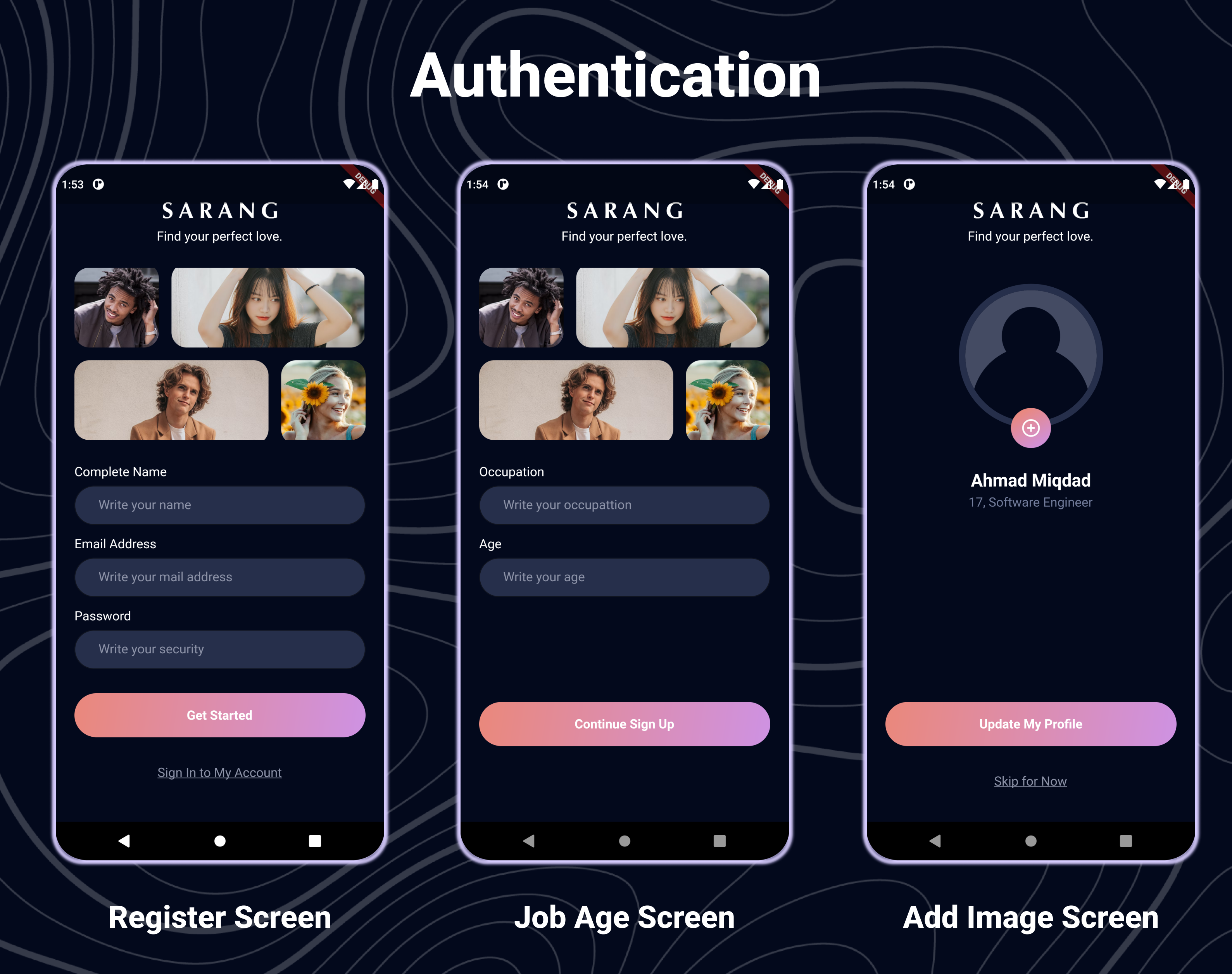 It is an application resulting from the course Bwa Dating App (Sarang). Mentor : Mr. Ditateum