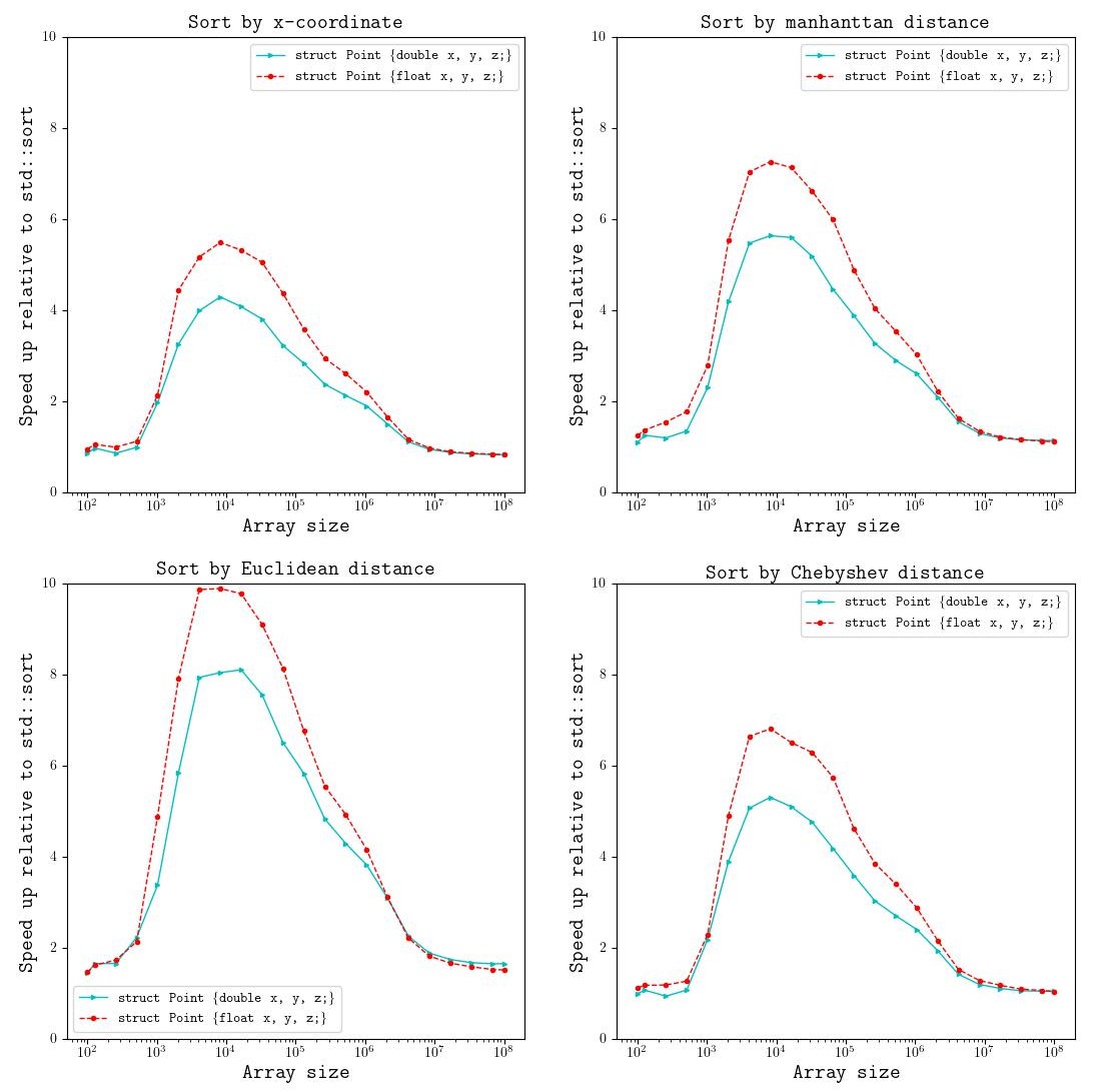 gets more complicated. Sorting by Euclidean distance can be up-to 10x faster.