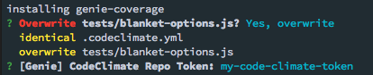 - A prompt will ask you for your CodeClimate repo token, if you don't have it, just press ENTER and you can modify it later in your