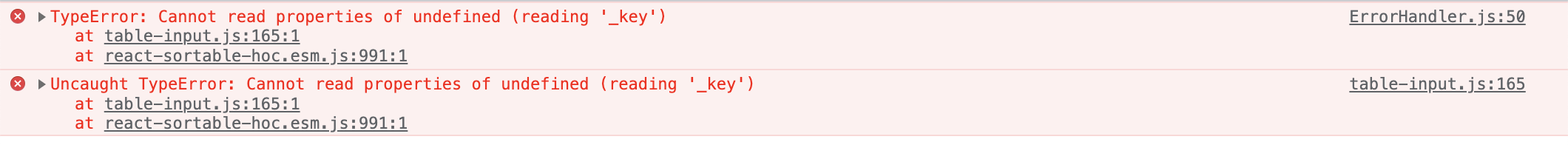 After creating the rows and columns, when a user drags a row to reorder there is a console error of: TypeError: Cannot read properties of undefined (reading '_key') <img width="602" alt="image" src="https://user-images.githubusercontent.com/1048751/186567335-5ef22804-a8a1-4608-a6d7-8ab9afd3a41a.png"> <img width="1060" alt="image" src="https://user-images.githubusercontent.com/1048751/186567398-5395fdaa-ffce-467f-b28e-49bf3d5dda4b.png">