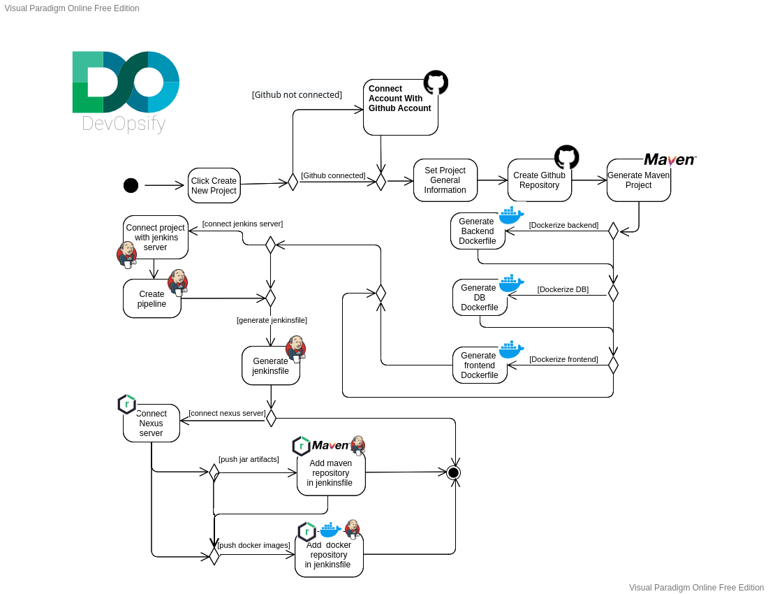 An assistance platform made using Spring framework that analyses your code, and helps you either to start a devops project, or to turn an existing project into a devops project using open source software (Git, Docker, Jenkins..)