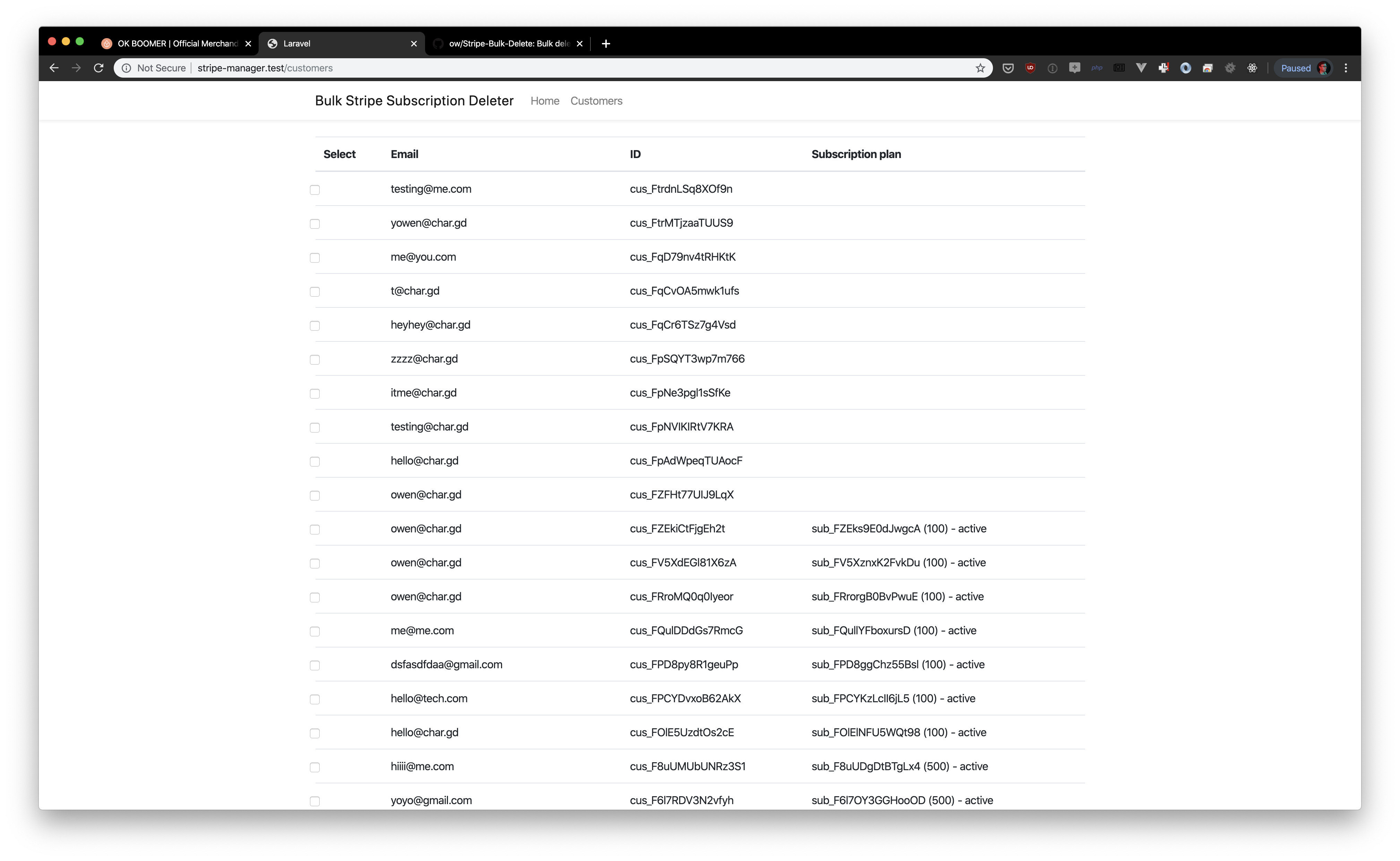 Need to do lots of things in Stripe, like canceling all subscriptions programmatically, and don't want to click each one in the dashboard? This is for you! This simple project makes it easy to bulk-cancel subscriptions and perform other mass actions that aren't possible with the Stripe API today.