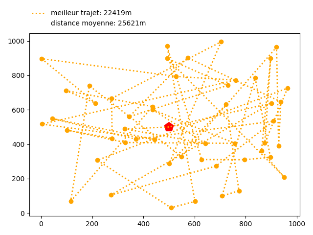 100 abeilles doivent parcourir 50 positions en un minimum de temps sur un plan donné
