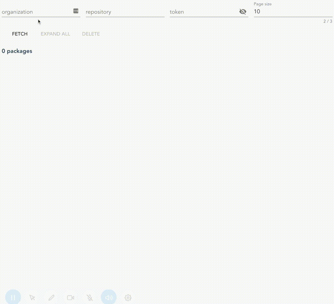 github-packages-manager is a client-side application to manage GitHub packages. It uses GitHub GraphQL API to fetch and display the list of packages and GitHub GraphQL Preview API for deletion. Because of it was made for my own needs only, it has a very limited set of functionalities.