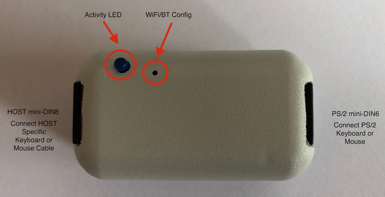 Once the cables have been connected, power on your machine and use the PS/2 keyboard/mouse or Bluetooth keyboard/mouse as normal. If any keyboard keys do no map correctly to the host keys, you can use the IoT web interface to add key mappings as required.NB. Bluetooth devices require pairing and once paired, on power up, may take a few seconds to connect. When using Bluetooth at power up, wake the bluetooth devices up by repeatedly hitting the shift key or shaking the mouse, this is necessary as the device will be in sleep mode and the SharpKey wont be able to connect.