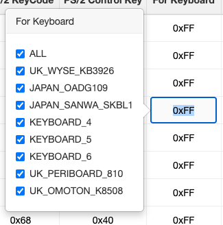 X68K KeyCode | This parameter represents the key value to be sent to the X68000 when the PS/2 KeyCode + PS/2 Control Key are matched. |