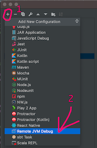Remote JVM Debug - New configuration will be automatically selected. You can assign it a custom name like "sandbox remote debugger" on presented screenshot. Host and port should be set exactly as they are on this screenshot. Last marked thing is module classpath. You should choose module corresponding to ES version you are trying to debug with name ending with