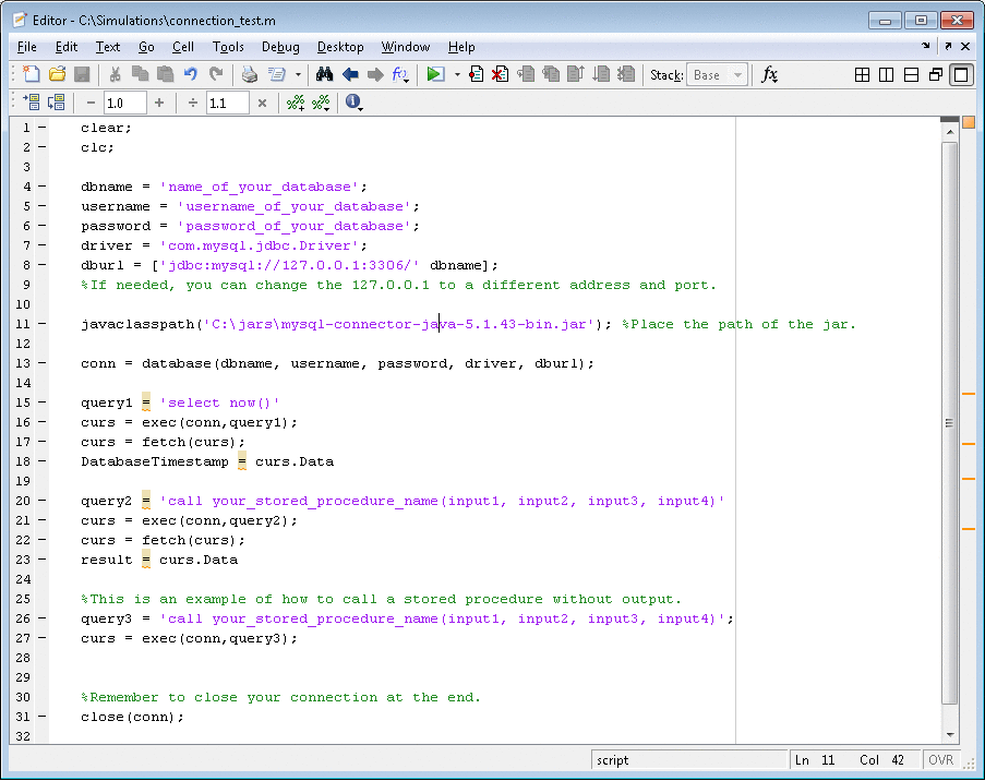 This is an example of how to create a connection from Matlab to a given database by JDBC (in our case, MySQL).
