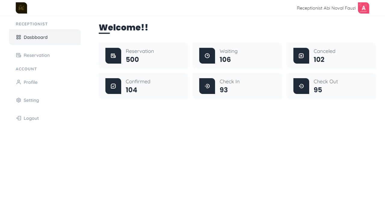 There are 3 roles in this application, namely admin, receptionist, and user or guest.