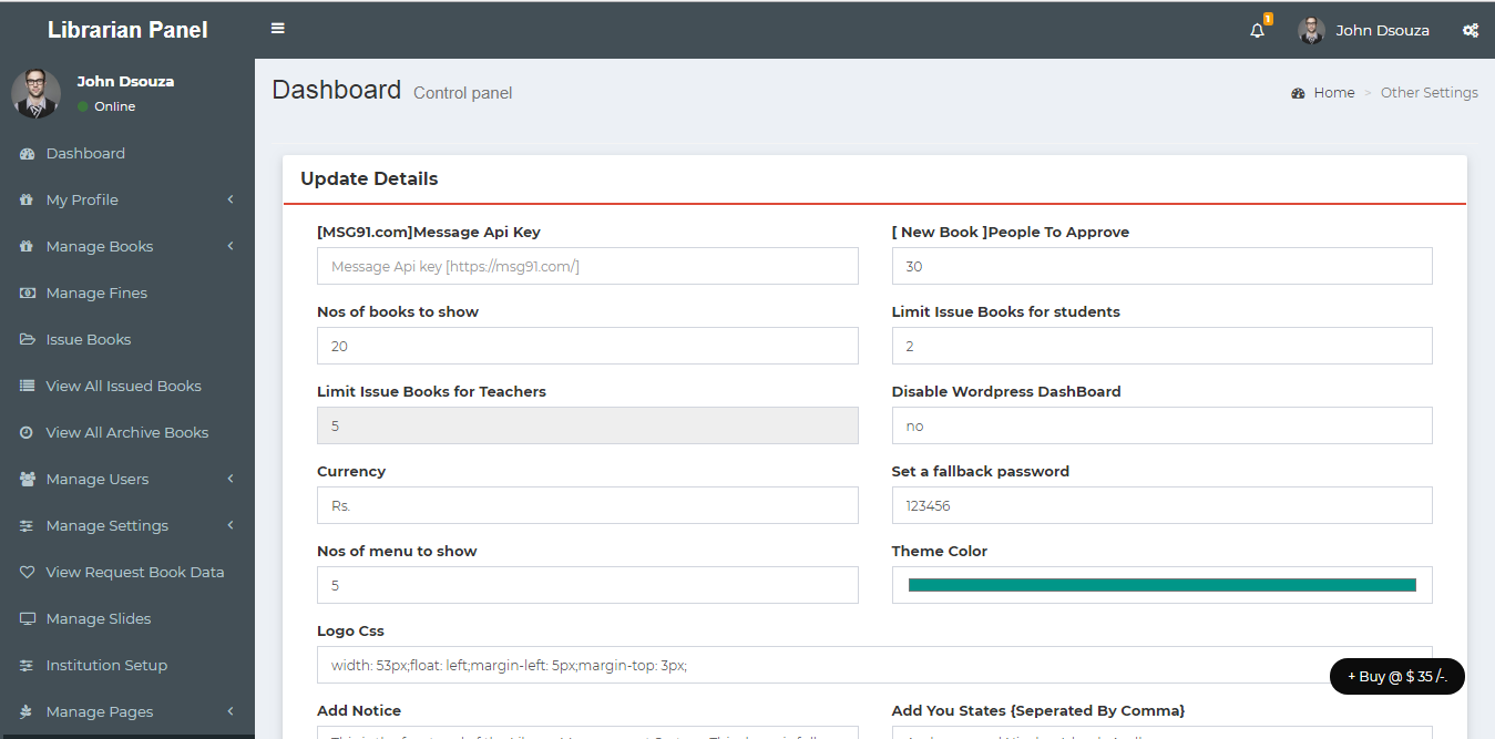https://wordpress.library-management.com if you are looking for a MVC version which is far more advanced that the wordpress code you can check the below link. https://library-management.com| Admin Login : | admin | 1234567890 |