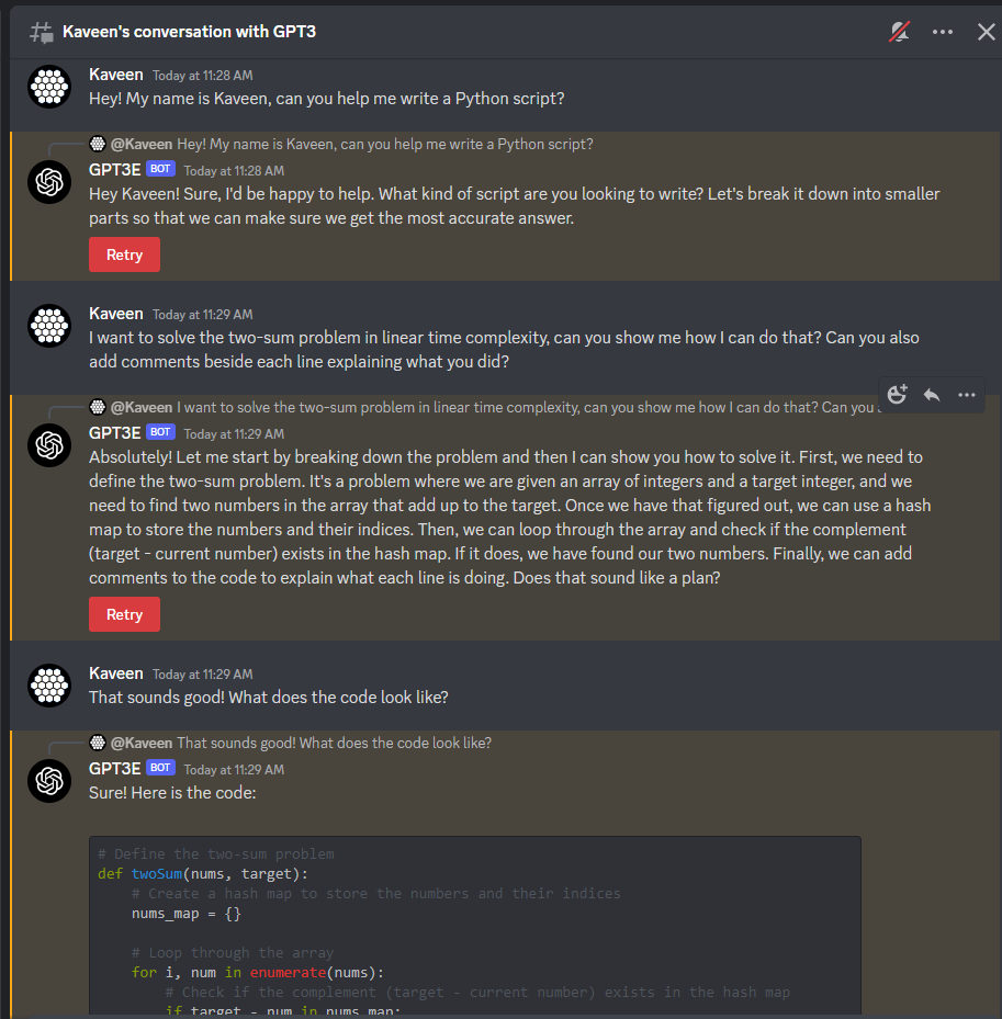 Redo Requests - A simple button after the GPT3 response or DALL-E generation allows you to redo the initial prompt you asked. You can also redo conversation messages by just editing your message!