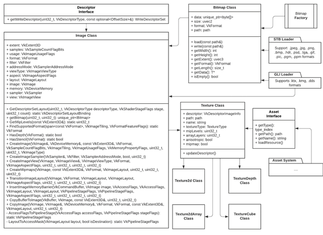 - Image file loading (ktx, kmg, dds, jpg, png, bmp, hdr, psd, tga, gif, pic, pgm, ppm)