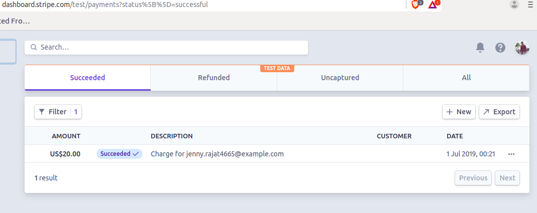 One-time payment is known as charge in the world of stripe payments. So we need to create charge.