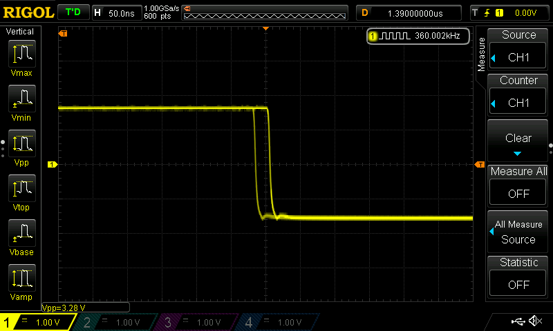 This is how the problem manifests in low frequencies. Check the falling edge of a 360 kHz: