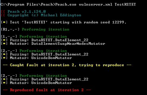 C:\> peach.exe vulnserver.xml TestKSTET