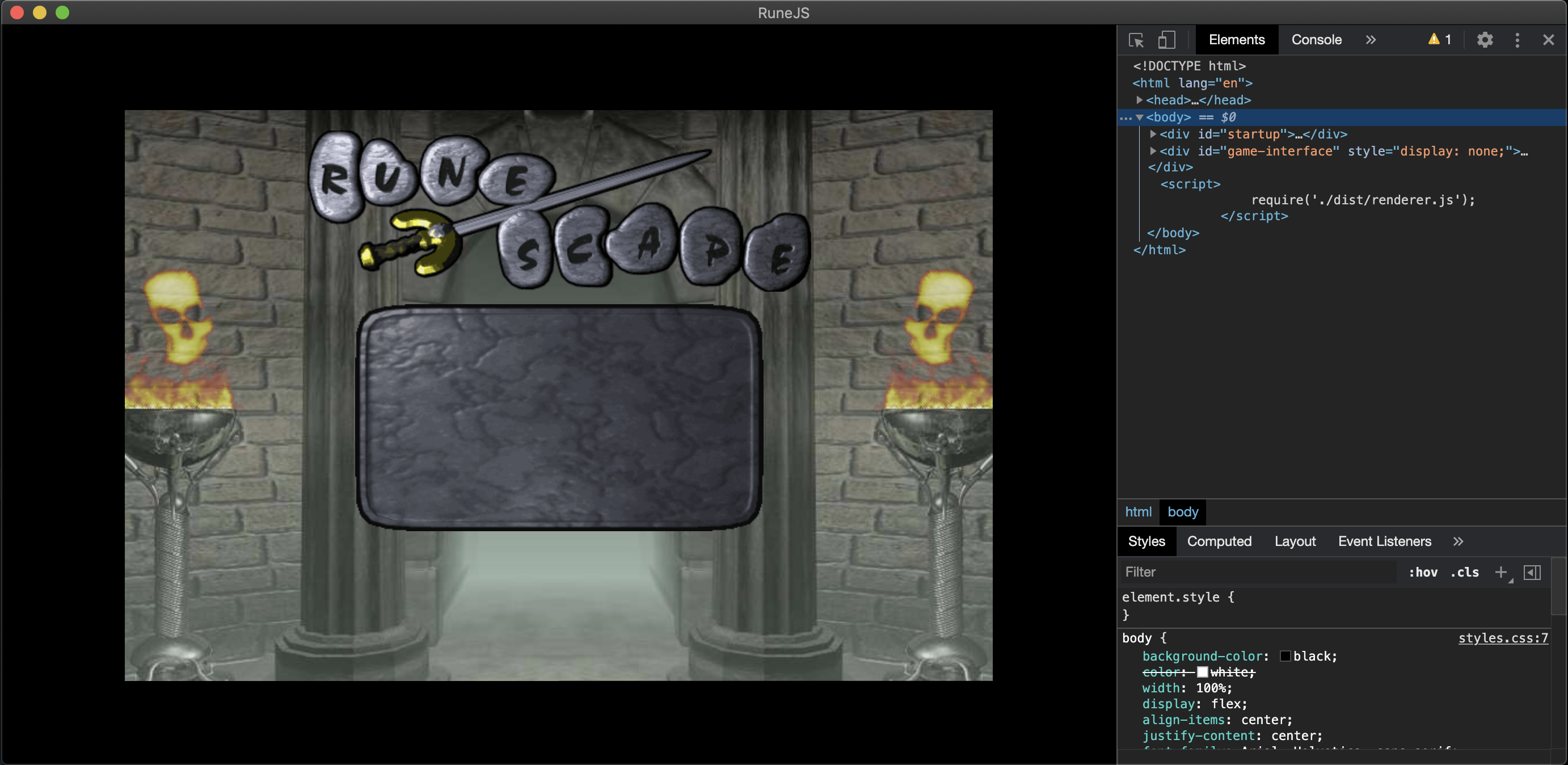 The RuneJS Client is a very much work-in-progress custom TypeScript game client for RuneJS servers. The application is written using React with Electron as the base.