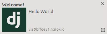 from webpush import send_user_notification payload = {"head": "Welcome!", "body": "Hello World"} send_user_notification(user=user, payload=payload, ttl=1000) # Here in the user parameter, a user object should be passed # The user will get notification to all of his subscribed browser. A user can subscribe many browsers.