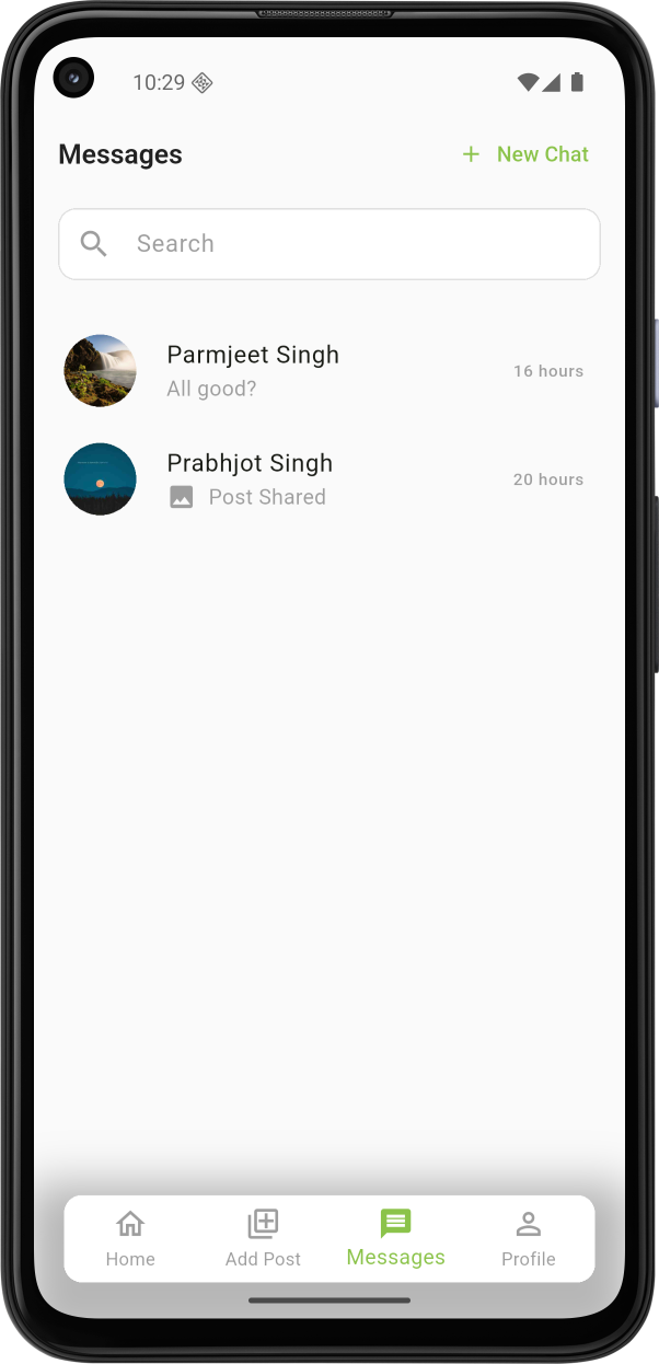 - 📤 Post Sharing: Share posts directly in chat with friends.