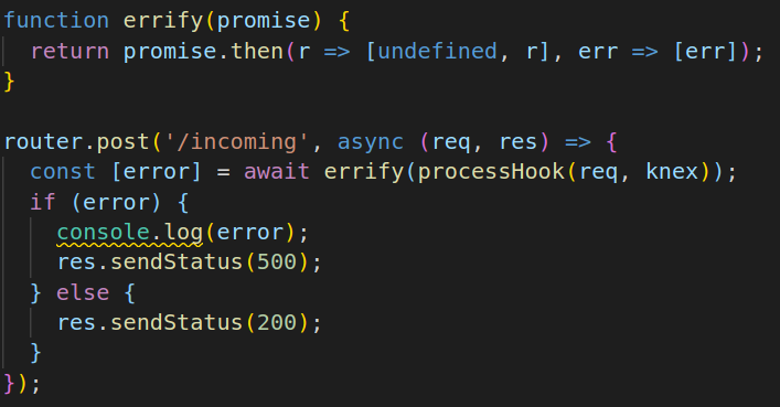 errify function is shown for clarity of function, but would be an imported utility in "real" code.