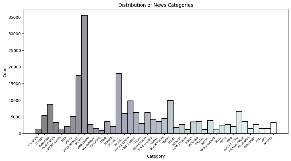 category: Category in which the article was published.headline: Headline of the article.authors: Authors of the article.link: Link to the original article.short_description: Short description of the article.date: Date when the article was published.