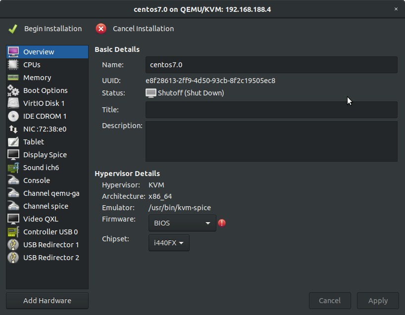 sean@Supermicro-813MFTQC:~$ sudo virt-host-validate QEMU: Checking for hardware virtualization : PASS QEMU: Checking if device /dev/kvm exists : PASS QEMU: Checking if device /dev/kvm is accessible : PASS QEMU: Checking if device /dev/vhost-net exists : PASS QEMU: Checking if device /dev/net/tun exists : PASS QEMU: Checking for cgroup 'memory' controller support : PASS QEMU: Checking for cgroup 'memory' controller mount-point : PASS QEMU: Checking for cgroup 'cpu' controller support : PASS QEMU: Checking for cgroup 'cpu' controller mount-point : PASS QEMU: Checking for cgroup 'cpuacct' controller support : PASS QEMU: Checking for cgroup 'cpuacct' controller mount-point : PASS QEMU: Checking for cgroup 'devices' controller support : PASS QEMU: Checking for cgroup 'devices' controller mount-point : PASS QEMU: Checking for cgroup 'net_cls' controller support : PASS QEMU: Checking for cgroup 'net_cls' controller mount-point : PASS QEMU: Checking for cgroup 'blkio' controller support : PASS QEMU: Checking for cgroup 'blkio' controller mount-point : PASS QEMU: Checking for device assignment IOMMU support : PASS QEMU: Checking if IOMMU is enabled by kernel : WARN (IOMMU appears to be disabled in kernel. Add intel_iommu=on to kernel cmdline arguments) LXC: Checking for Linux >= 2.6.26 : PASS LXC: Checking for namespace ipc : PASS LXC: Checking for namespace mnt : PASS LXC: Checking for namespace pid : PASS LXC: Checking for namespace uts : PASS LXC: Checking for namespace net : PASS LXC: Checking for namespace user : PASS LXC: Checking for cgroup 'memory' controller support : PASS LXC: Checking for cgroup 'memory' controller mount-point : PASS LXC: Checking for cgroup 'cpu' controller support : PASS LXC: Checking for cgroup 'cpu' controller mount-point : PASS LXC: Checking for cgroup 'cpuacct' controller support : PASS LXC: Checking for cgroup 'cpuacct' controller mount-point : PASS LXC: Checking for cgroup 'devices' controller support : PASS LXC: Checking for cgroup 'devices' controller mount-point : PASS LXC: Checking for cgroup 'net_cls' controller support : PASS LXC: Checking for cgroup 'net_cls' controller mount-point : PASS LXC: Checking for cgroup 'freezer' controller support : PASS LXC: Checking for cgroup 'freezer' controller mount-point : PASS