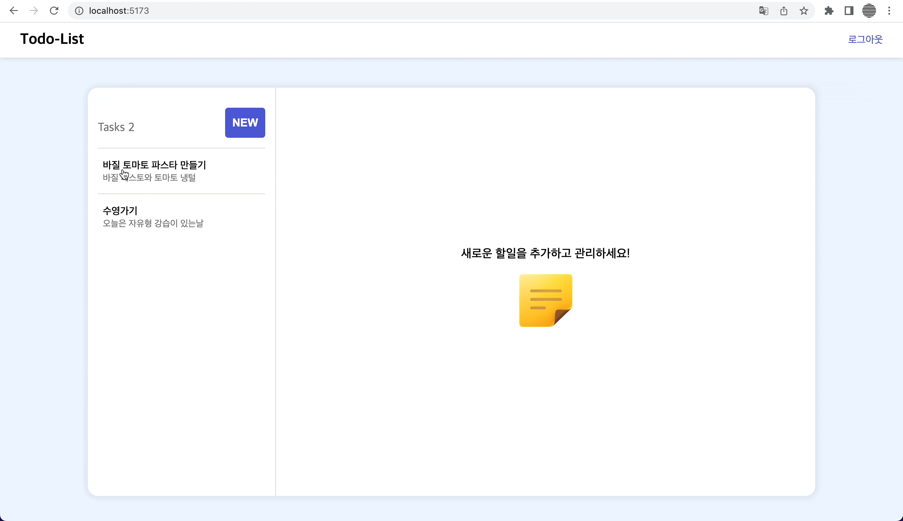 - 모든 페이지에서 왼쪽에 Todo List가 있고, 오른쪽 UI만 변경되는 상황