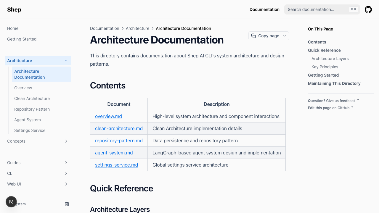 packages/docs-site/) with 42 pages covering architecture, CLI, concepts, development guides, API references, and web UI documentation.github/workflows/docs.yml) for automatic publishing on push to mainnext.config.mjs,tsconfig.json, and MDX supportEvidence
