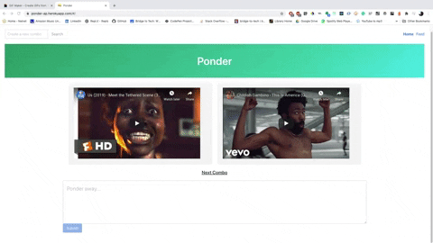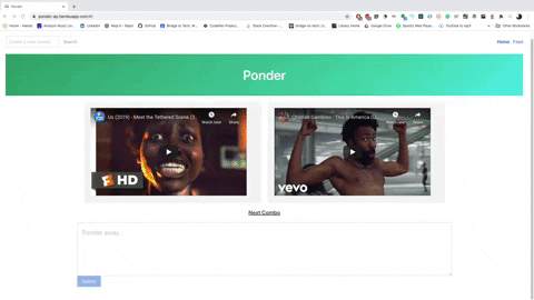 User begins by searching by a keyword to generate a combo of movie and music clips gathered from Youtube API: