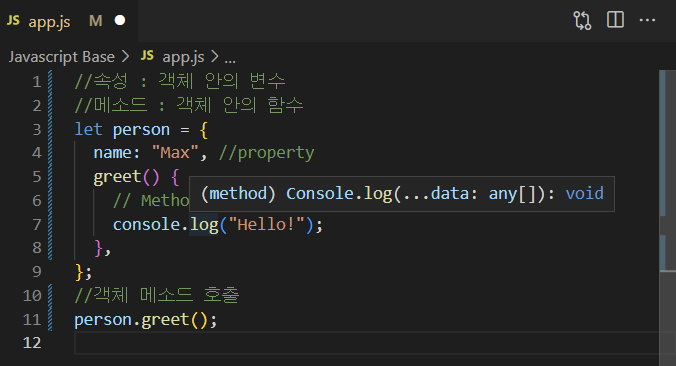 함수 호출 위에 마우스 커서를 올리면 필요한 매개변수 등 함수 정보가 보인다.