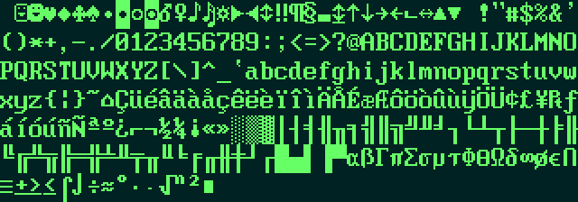 - out/moderndos-8x16/graph.txt: All CP437 glyphs represented