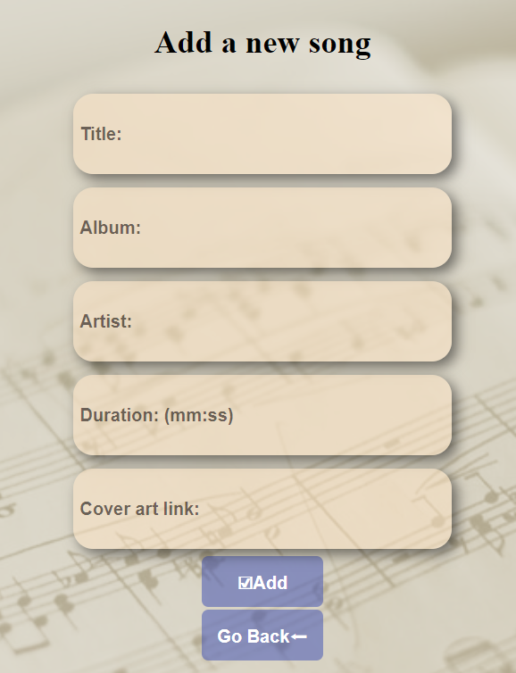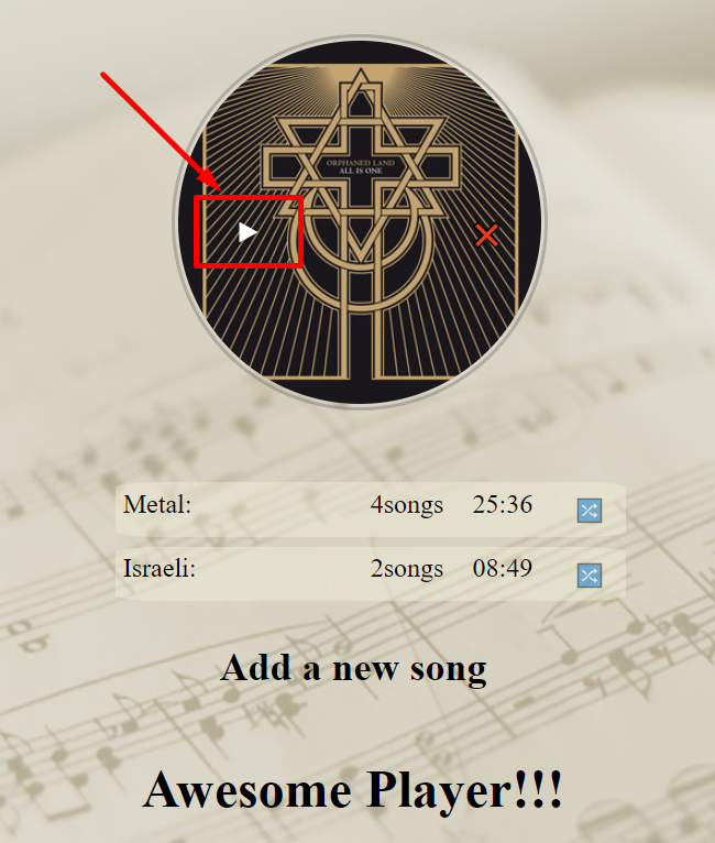From 7224a2f51e175666f8c52f46300e2562c1bb7fd4 Mon Sep 17 00:00:00 2001 From: tsoriLache <89573774+tsoriLache@users.noreply.github.com> Date: Tue, 14 Sep 2021 20:56:43 +0300 Subject: [PATCH 01/31] createElement func general function creates element and gives it class,atrributes and children --- scripts/index.new.js | 15 ++++++++++++++- 1 file changed, 14 insertions(+), 1 deletion(-) diff --git a/scripts/index.new.js b/scripts/index.new.js index c3a39c8e..8787a3d1 100644 --- a/scripts/index.new.js +++ b/scripts/index.new.js @@ -79,7 +79,20 @@ function createPlaylistElement({ id, name, songs }) { * @param {Object} eventListeners - the event listeners on the element */ function createElement(tagName, children = [], classes = [], attributes = {}, eventListeners = {}) { - // Your code here + const el = document.createElement(tagName); + // Children + for(const child of children) { + el.append(child); + } + // Classes + for(const cls of classes) { + el.classList.add(cls); + } + // Attributes + for (const attr in attributes) { + el.setAttribute(attr, attributes[attr]); + } + return el; } /** From eba6338899b7d1cf738ef2af6a2d2895602e6988 Mon Sep 17 00:00:00 2001 From: tsoriLache <89573774+tsoriLache@users.noreply.github.com> Date: Wed, 15 Sep 2021 09:22:30 +0300 Subject: [PATCH 02/31] createSongElement added createSongElement( func. and 2 support functions: findSong secToDur --- scripts/index.new.js | 27 +++++++++++++++++++++------ 1 file changed, 21 insertions(+), 6 deletions(-) diff --git a/scripts/index.new.js b/scripts/index.new.js index 8787a3d1..8128c388 100644 --- a/scripts/index.new.js +++ b/scripts/index.new.js @@ -1,3 +1,17 @@ +/*support functions */ +function findSong(id,mPlayer=player){ + for(let song of mPlayer.songs){ + if (song.id===id){ + return song; + } + } + throw "ID not found"; +} + +function secToDur(sec){ + return((Math.floor(sec/60))<10? "0": "")+`${Math.floor(sec/60)}:` +((sec%60)<10? "0": "")+`${sec%60}` +} + /** * Plays a song from the player. * Playing a song means changing the visual indication of the currently playing song. @@ -47,13 +61,14 @@ function handleAddSongEvent(event) { * Creates a song DOM element based on a song object. */ function createSongElement({ id, title, album, artist, duration, coverArt }) { - const children = [] - const classes = [] - const attrs = {} - const eventListeners = {} - return createElement("div", children, classes, attrs, eventListeners) + const nameEl=createElement("span", [title],["song-name"]); + const albumEl=createElement("span",[album],["album-name"]) + const artistEl = createElement("span", [artist],["artist"]); + const durationEl = createElement("span", ["" + secToDur(duration)] ,["duration", "short-duration"], {onclick: `console.log('${duration}')`}); + const imgEl = createElement("img", [] ,["album-art"], {src: coverArt}); + return createElement("div", [nameEl,albumEl,"Artist: ", artistEl, "Duration: ", durationEl, imgEl],["song"],{id:id+"song", onclick: `playSong(${id})` }); } - +console.log(createSongElement(player.songs[0])) /** * Creates a playlist DOM element based on a playlist object. */ From d9ef536d0bfccc390568320bcf24ba76ba486bac Mon Sep 17 00:00:00 2001 From: tsoriLache <89573774+tsoriLache@users.noreply.github.com> Date: Wed, 15 Sep 2021 09:27:30 +0300 Subject: [PATCH 03/31] createPlaylistElement added createPlaylistElement func. and support function - playlistDuration. --- scripts/index.new.js | 17 ++++++++++++----- 1 file changed, 12 insertions(+), 5 deletions(-) diff --git a/scripts/index.new.js b/scripts/index.new.js index 8128c388..acfbb70f 100644 --- a/scripts/index.new.js +++ b/scripts/index.new.js @@ -12,6 +12,14 @@ function secToDur(sec){ return((Math.floor(sec/60))<10? "0": "")+`${Math.floor(sec/60)}:` +((sec%60)<10? "0": "")+`${sec%60}` } +function playlistDuration(id) { + let plDuration=0; + for(let songID of findPlaylist(id).songs){ + plDuration+=(findSong(songID).duration); + } + return (plDuration); +} + /** * Plays a song from the player. * Playing a song means changing the visual indication of the currently playing song. @@ -73,11 +81,10 @@ console.log(createSongElement(player.songs[0])) * Creates a playlist DOM element based on a playlist object. */ function createPlaylistElement({ id, name, songs }) { - const children = [] - const classes = [] - const attrs = {} - const eventListeners = {} - return createElement("div", children, classes, attrs, eventListeners) + const nameEl=createElement("span", [name,":"],["playlist-name"]); + const quantityEl=createElement("span",[songs.length],["num-of-song"]) + const attrs = {id:id+"pl"} + return createElement("div", [nameEl,"Number Of Songs:",quantityEl,"Playlist Duration:",secToDur(playlistDuration(id))], ["playlist"],attrs) } /** From 5a4ed7302453101a9c8ac13a96b388a36094450b Mon Sep 17 00:00:00 2001 From: tsoriLache <89573774+tsoriLache@users.noreply.github.com> Date: Wed, 15 Sep 2021 09:33:15 +0300 Subject: [PATCH 04/31] generateSongs & generatePlaylists functions that append songs and playlist in there place on the html(webpage) --- scripts/index.new.js | 14 ++++++++++---- 1 file changed, 10 insertions(+), 4 deletions(-) diff --git a/scripts/index.new.js b/scripts/index.new.js index acfbb70f..1ad6f725 100644 --- a/scripts/index.new.js +++ b/scripts/index.new.js @@ -120,15 +120,21 @@ function createElement(tagName, children = [], classes = [], attributes = {}, ev /** * Inserts all songs in the player as DOM elements into the songs list. */ -function generateSongs() { - // Your code here +const songEl=document.getElementById("songs") +function generateSongs(player) { + for(song of player.songs){ + songEl.append(createSongElement(song)); + } } /** * Inserts all playlists in the player as DOM elements into the playlists list. */ -function generatePlaylists() { - // Your code here +const playListEl=document.getElementById("playlists") +function generatePlaylists(player) { + for(playlist of player.playlists){ + playListEl.append(createPlaylistElement(playl