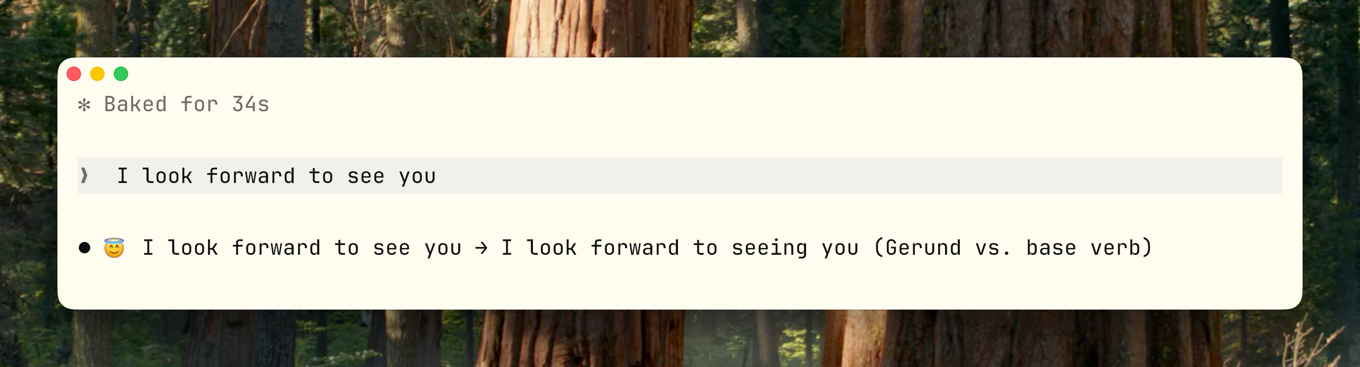 curl -sL https://raw.githubusercontent.com/tw93/Waza/main/scripts/setup-statusline.sh | bashMost AI models were trained on far more English than any other language, so every prompt in your native tongue goes through an invisible translation layer. Switch to English and the reasoning sharpens, answers get more precise, and every session doubles as language practice.